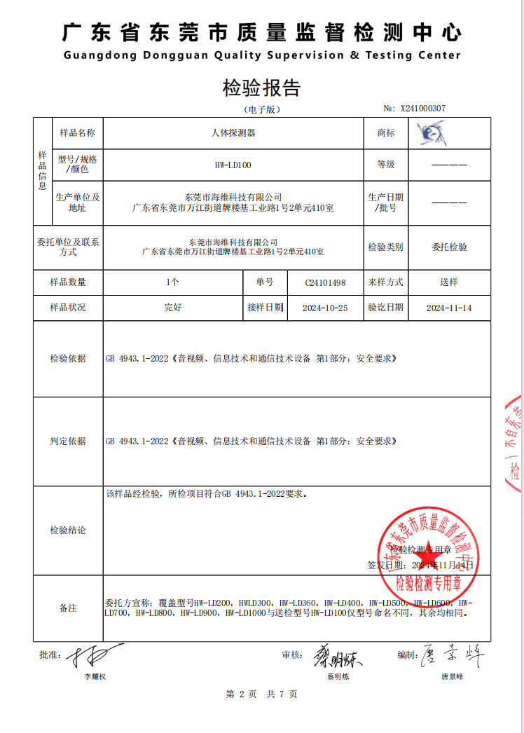 人體探測器檢測報告
